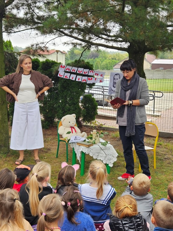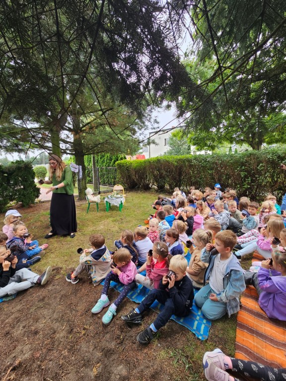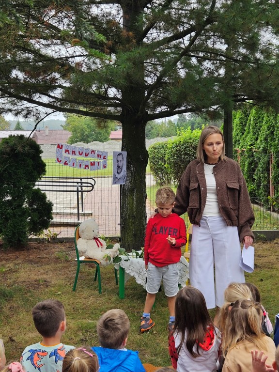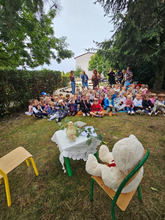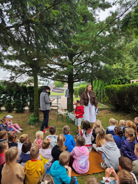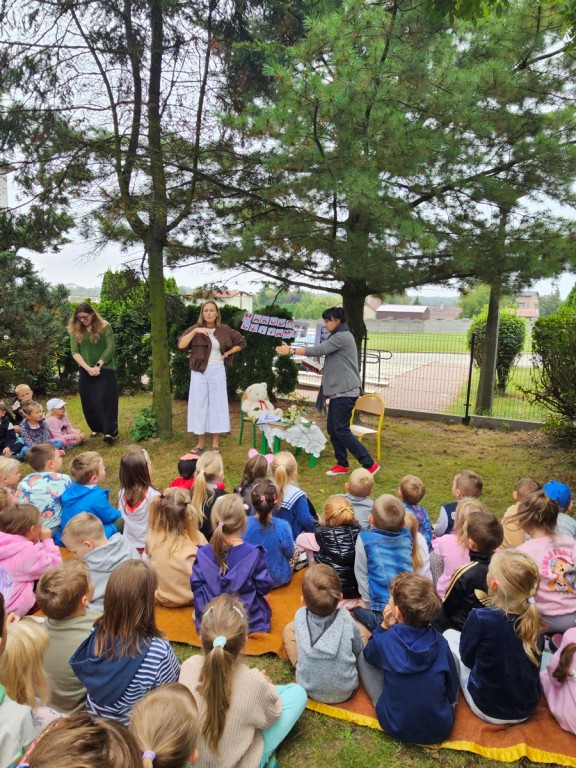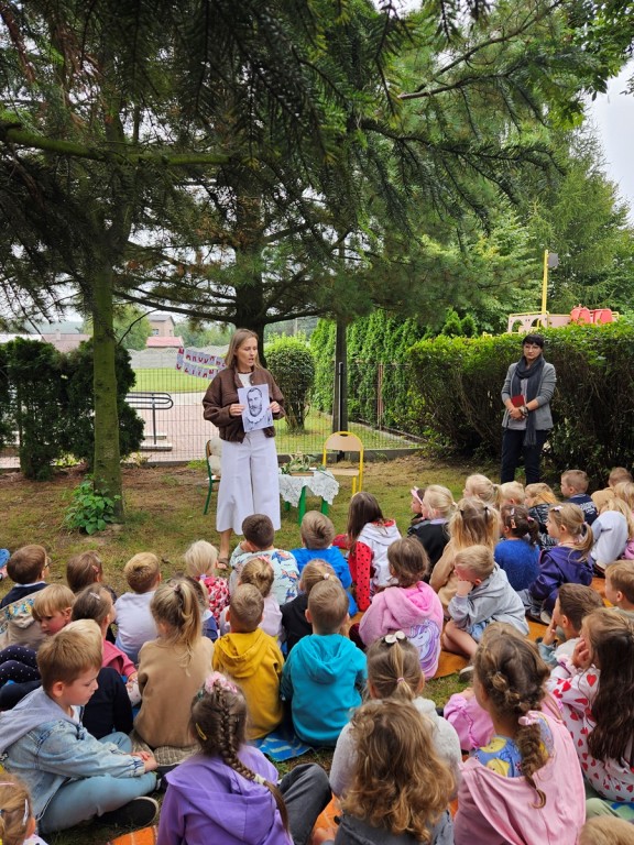 Dzień 6 września 2025r odbyła się akcja Narodowe Czytanie pod hasłem Jan Kochanowski. Poezje. Pod Patronatem Honorowym Pary Prezydenckiej. Nasze Przedszkole wzięło udział w tej akcji i 8 września na terenie ogrodu odbyło się Narodowe Czytanie poezji Jana Kochanowskiego. To wyjątkowe wydarzenie, które przypomina, jak ważne jest czytanie i jak wielką wartość mają polskie utwory literackie. Serdecznie dziękujemy pani Agacie z pobliskiej Biblioteki Miejskiej za wspólne czytanie i stworzenie magicznej atmosfery, w której dzieci mogły przenieść się w świat literatury.