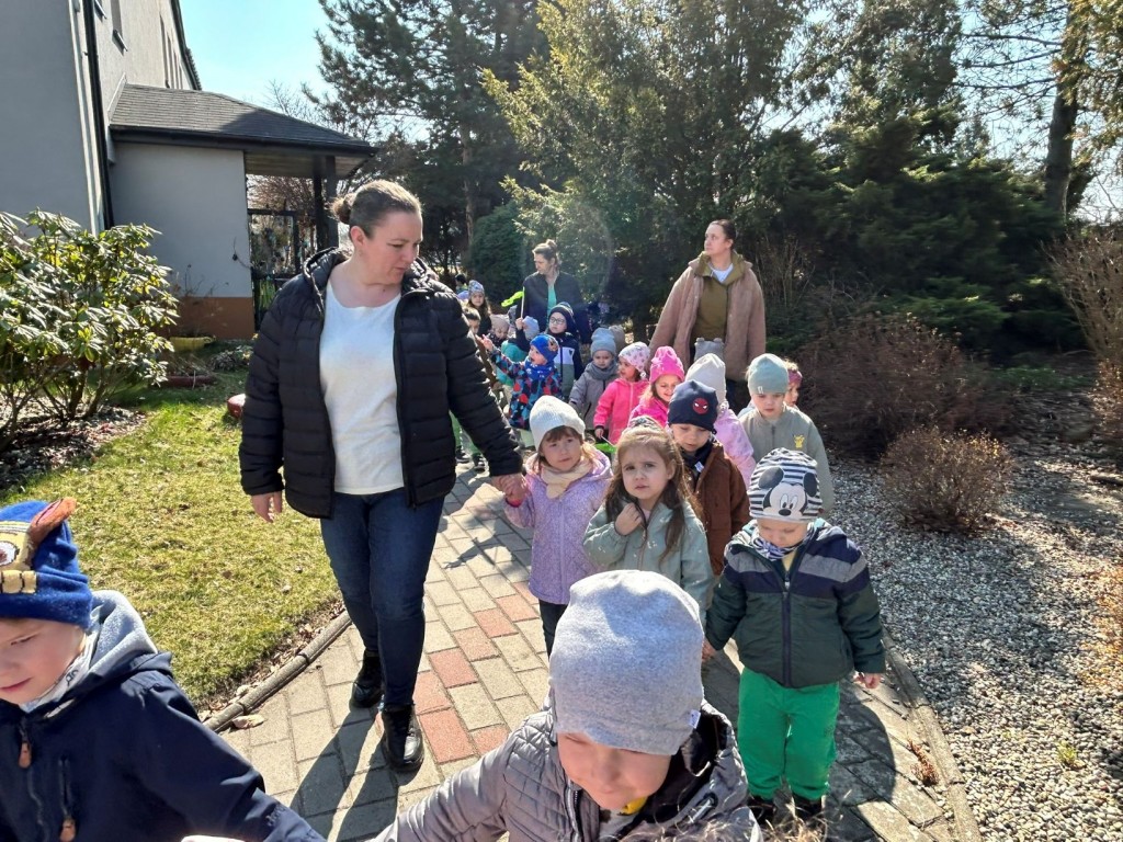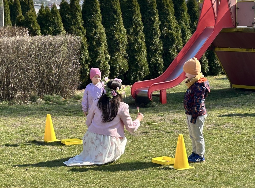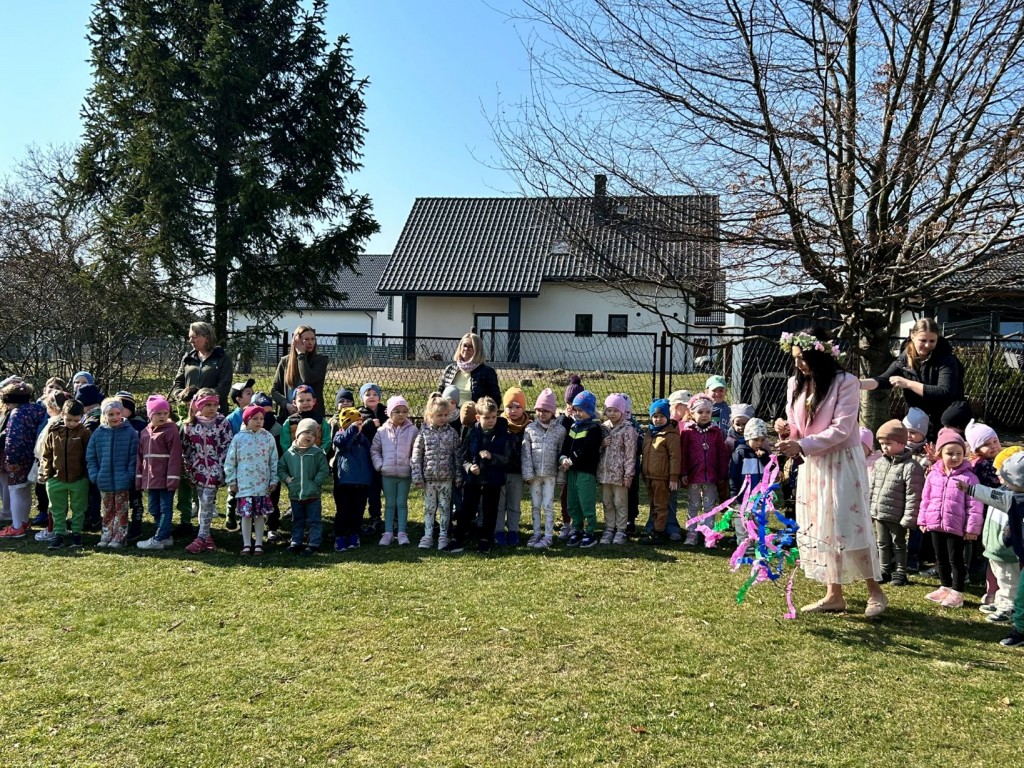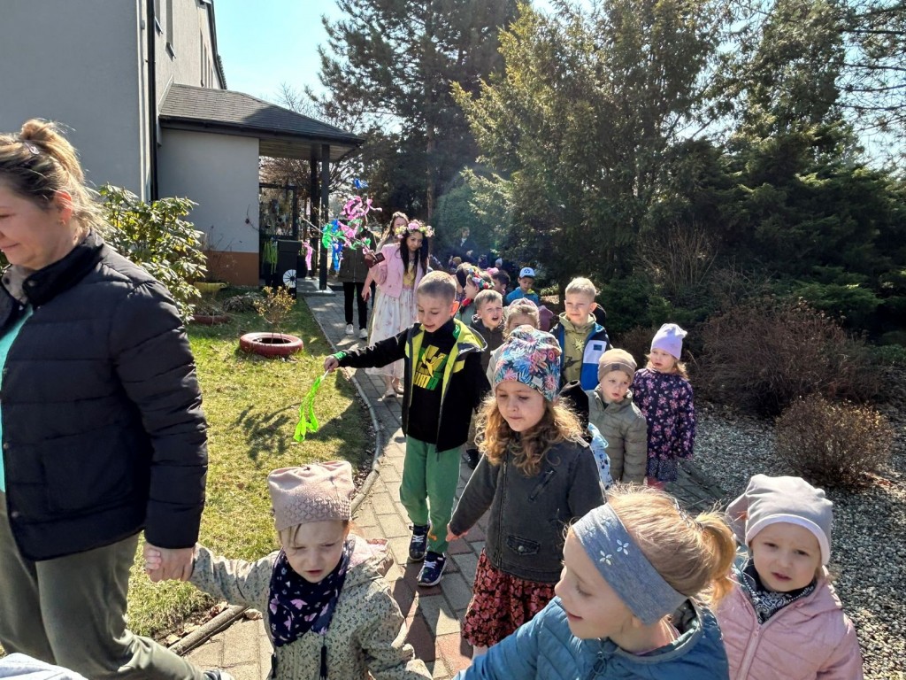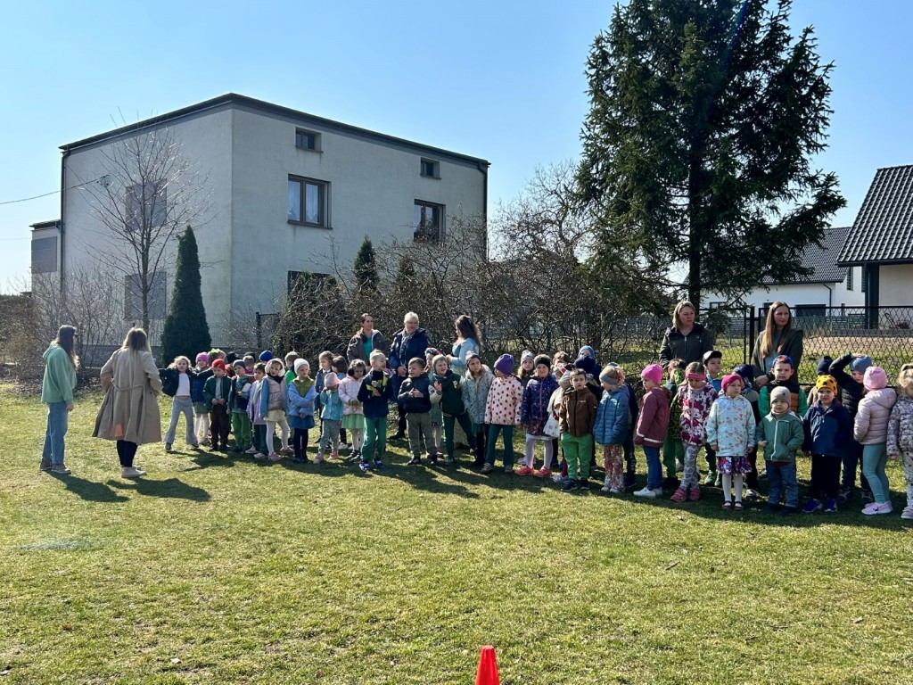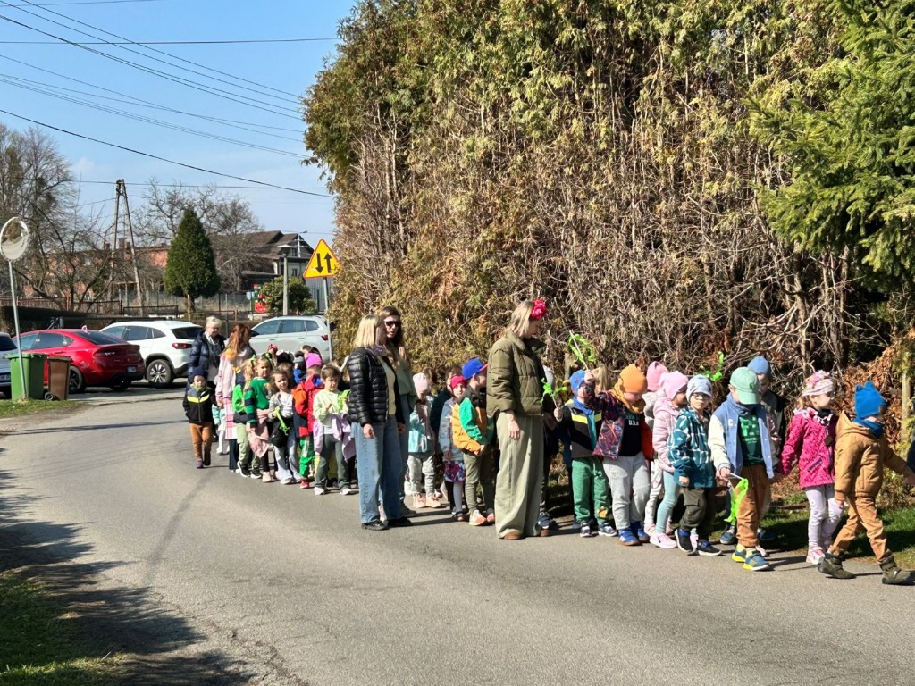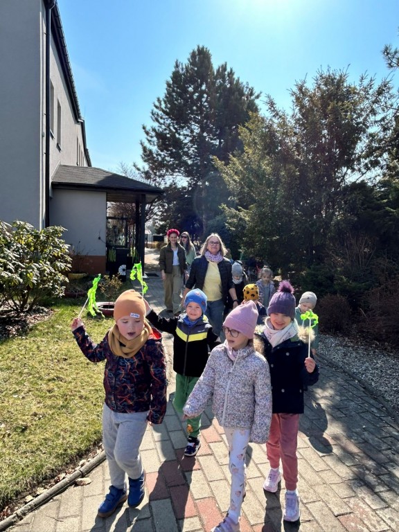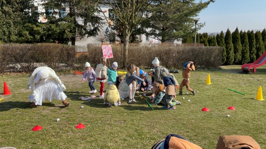 Z takim okrzykiem przywitaliśmy Panią Wiosnę, ale zanim to nastąpiło to na naszym palcu przedszkolnym rywalizowały ze sobą Pani Zima z Panią Wiosną podczas konkurencji sportowych. Dzielnie w tym wszystkim pomagały im przedszkolaki. Było dużo śmiechu i dobrej zabawy. Na koniec Liski i Biedronki zaśpiewały piosenkę, po której korowodem przeszliśmy wokół Przedszkola, wołając „Witaj Wiosno, żegnaj Zimo!”