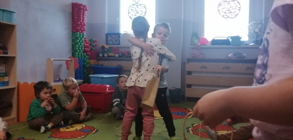 Zabawa była świetna -dziewczynki przeprowadziły wywiad z chłopcami, by lepiej ich poznać. Była zabawa w chowanego –chować się musieli chłopcy rzecz jasna, były życzenia i uściski .