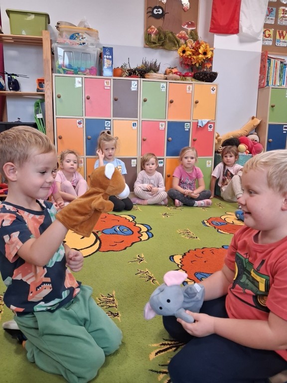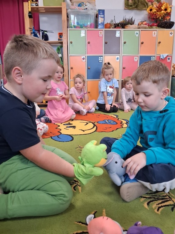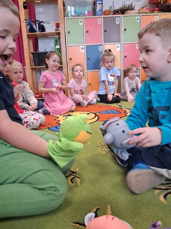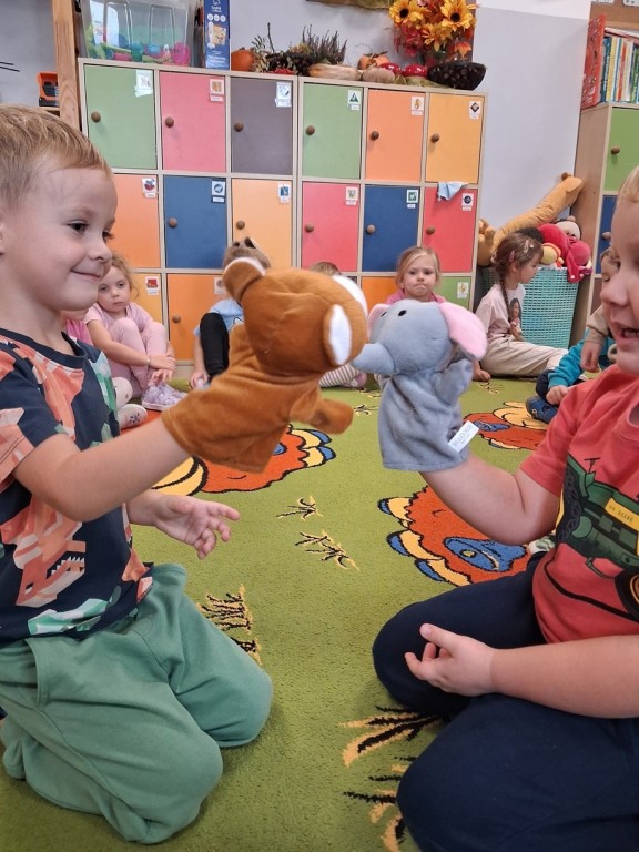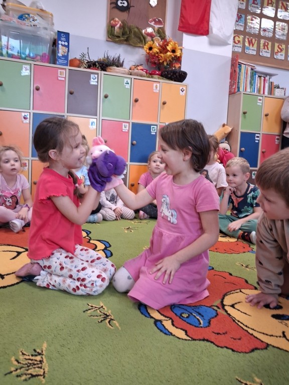 Podczas całego tygodnia towarzyszyły nam zabawy integracyjne, które wzmacniały relacje miedzy Misiami., uczyliśmy się rozwiazywania konfliktów i świętowaliśmy „dzień emocji” w myśl zasady „porozumienie bez przemocy”. Rozmawialiśmy o emocjach czytając różne książki, rozpoznając mimikę w lusterkach, czy odtwarzając różne sytuacje bawiąc się pacynkami.