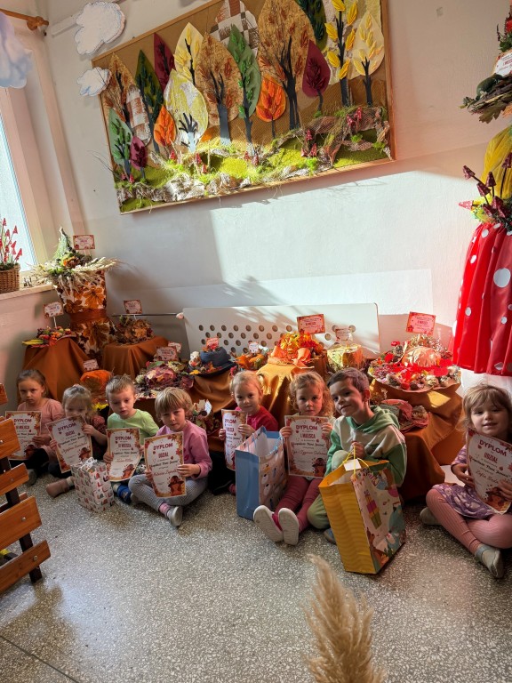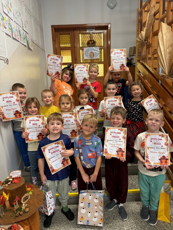 W naszym przedszkolu odbył się kolorowy i pełen fantazji konkurs "Kapelusz Pani Jesieni". Dzieci wraz z rodzicami wykazały się ogromną kreatywnością, tworząc przepiękne jesienne kapeusze ozdobione liśćmi, żołędziami, kasztanami i innymi darami natury.